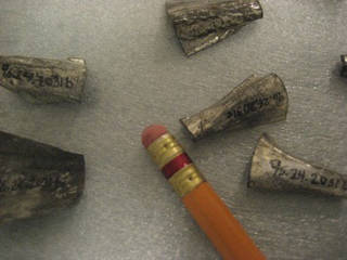 Labels should be durable, removable/reversible, and should not cause damage to the object. Never use permanent labeling techniques (i.e., etching or engraving) or pressure sensitive tape or stickers to label materials! Artifact labels should always be made or applied with approved materials -- different types of artifacts may require different labels. Typically, the best method of labeling basic museum object materials is to apply a barrier coat of B-72 lacquer, upon which a label (on acid-free paper) is applied or the number is directly written on the barrier coat with permanent ink. A top coat of B-72 lacquer is then applied to protect the label. If the surface of an object is too fragile or damaged (covered in a layer of corrosion, for example), an acid-free paper tag with a cotton string can be carefully tied to the item. If objects are too small to mark directly, they can be placed in a small container (polyethylene bag or acid-free envelope) and the container can be marked with a label.