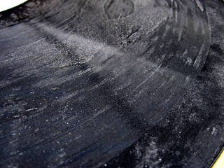 - All grooved disc media is susceptible to warpage, breakage, groove wear, and surface contamination. Sources of surface contamination include dirt, dust, mold, and other foreign materials, all of which can abrade or damage the grooves and diminish playback sound quality. Excessive surface damage and groove wear are generally identifiable on discs that have a dull surface, scratches, pits, and/or cracks. Lacquer discs are prone to unpredictable and sudden catastrophic failure due to surface delamination, which is often caused by storage environments with high humidity and/or temperature. In this process, the lacquer coating of a disc contracts on its core. As the coating cracks or peels away from the core, the information that it contained is lost. Lacquer discs may additionally suffer from plasticizer loss, which causes the disc coating to become brittle and can lead to delamination. Plasticizer loss, or exudiation, is identifiable as a white, greasy powder with a crystalline appearance that appears on the disc's surface. Sometimes mistaken for mold, the powder is in fact fatty acids (palmitic or stearic) that have migrated to the disc's surface as the plasticizers begin to deteriorate. Acids, like those left by fingerprints, will precipitate the formation of dusty, white palmitic acid deposits. Over time, these deposits can cause permanent damage to the recorded information. Hasty attempts to clean it off may do further harm.